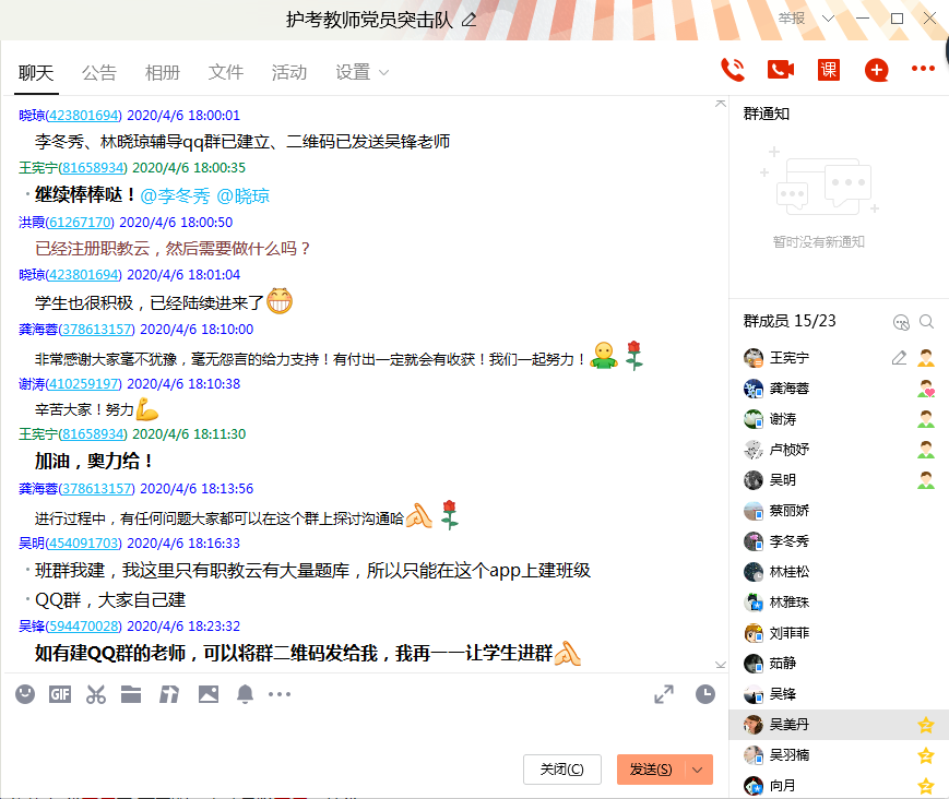 今年上半年,由于新冠疫情的影響,老師與學(xué)生均隔離在家,“護(hù)考教師黨員突擊隊(duì)”克服困難,創(chuàng)造條件,組成了七個(gè)輔導(dǎo)小分隊(duì),每個(gè)小分隊(duì)由兩位黨員教師為10~11名學(xué)生進(jìn)行線上輔導(dǎo),通過每日線上打卡、線上答疑、直播講解等方式,為學(xué)生梳理知識(shí)重難點(diǎn),督促學(xué)生及時(shí)復(fù)習(xí),并通過隊(duì)員小比賽,互為小老師等方式激發(fā)學(xué)生的學(xué)習(xí)興趣與信心,提高學(xué)習(xí)效果,護(hù)考培訓(xùn)取得階段性效果。