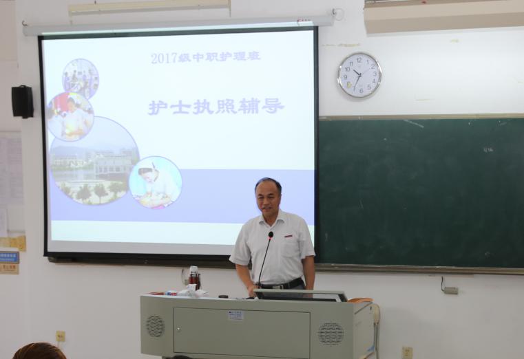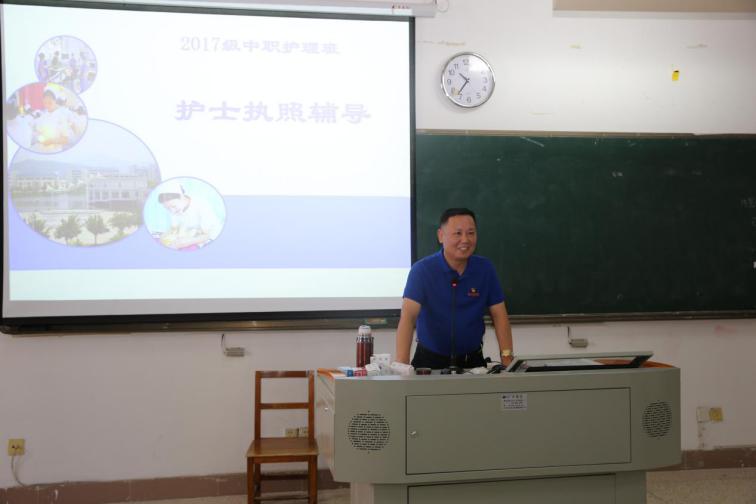學(xué)院領(lǐng)導(dǎo)高度重視精準(zhǔn)扶貧班學(xué)生的護(hù)考培訓(xùn),到班級(jí)與學(xué)生親切交談,為他們加油助威。學(xué)院黨委書記曾武祈用四個(gè)熱愛“熱愛生活、熱愛學(xué)習(xí)、熱愛工作、熱愛家國”激勵(lì)學(xué)生好好學(xué)習(xí)。
