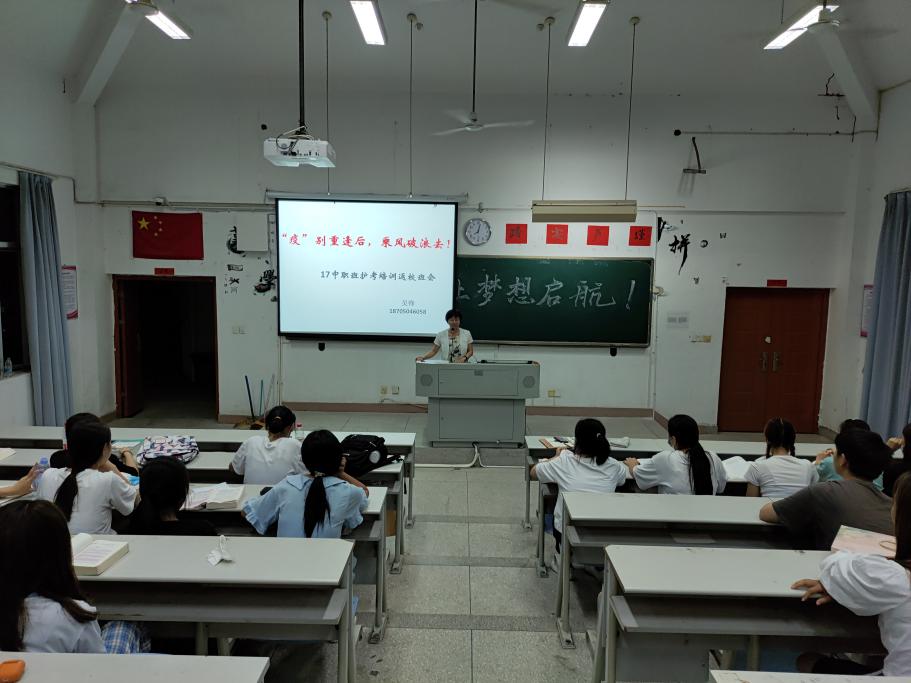 學(xué)生返校當(dāng)天,迅速召開“17級(jí)護(hù)理中職班護(hù)考培訓(xùn)”動(dòng)員大會(huì),對(duì)同學(xué)參加線下培訓(xùn)提出殷切希望和具體要求。