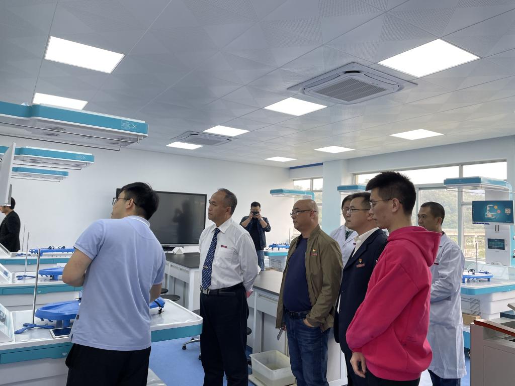 2021年11月18日,校長許能鋒走進(jìn)醫(yī)學(xué)基礎(chǔ)部,參觀醫(yī)學(xué)機(jī)能實(shí)驗(yàn)實(shí)訓(xùn)室,了解高本貫通專業(yè)生理學(xué)教學(xué)工作進(jìn)展、課程建設(shè)及實(shí)訓(xùn)室建設(shè)情況。