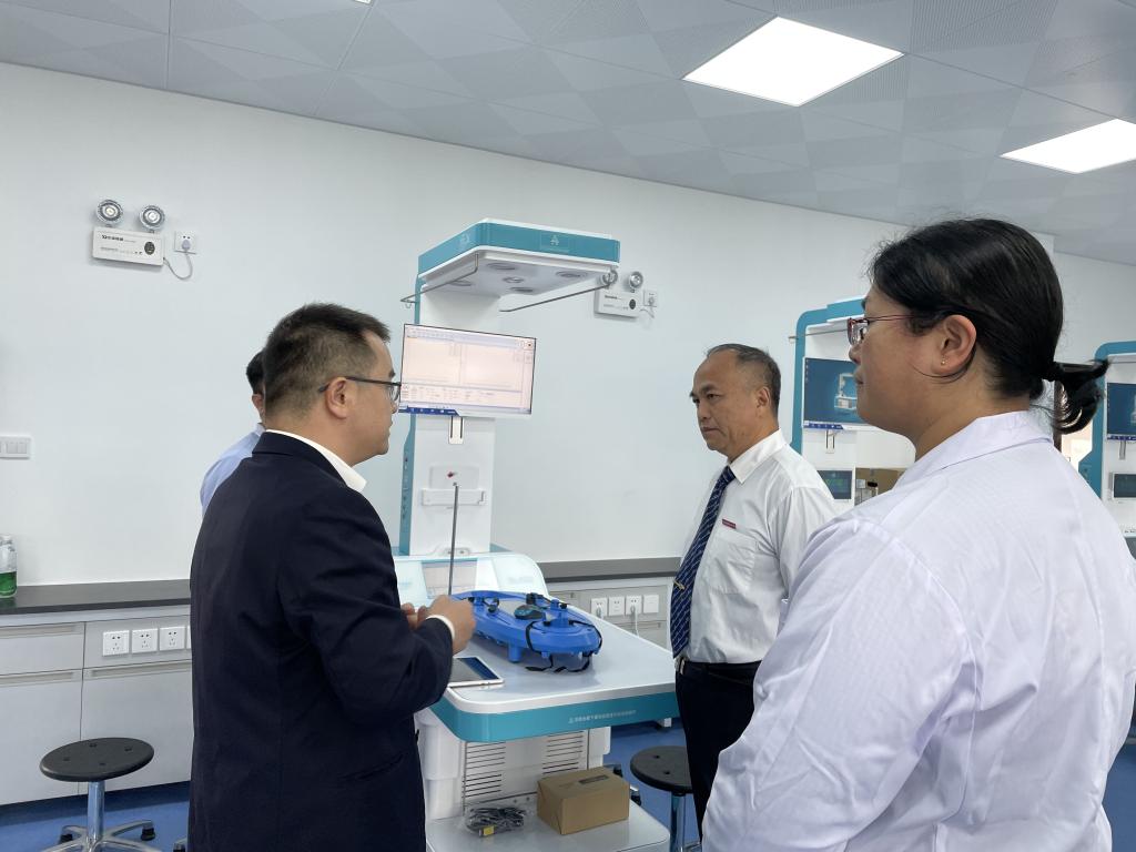 許能鋒在醫(yī)學(xué)基礎(chǔ)部負(fù)責(zé)人的陪同下到新建成的醫(yī)學(xué)機(jī)能實(shí)驗(yàn)實(shí)訓(xùn)室考察,詳細(xì)了解設(shè)備的性能。在與老師仔細(xì)交談后,他提出三點(diǎn)建議:一是充分發(fā)揮高本貫通專業(yè)輻射作用,加強(qiáng)本科教學(xué)工程建設(shè),強(qiáng)化實(shí)驗(yàn)教學(xué)示范、精品在線開放課等課程建設(shè),從而提高整體教學(xué)質(zhì)量。二是堅(jiān)持問題導(dǎo)向,切實(shí)保障醫(yī)學(xué)機(jī)能實(shí)驗(yàn)實(shí)訓(xùn)教學(xué)條件,堅(jiān)持“以評促建、以評促管、以評促改、評建結(jié)合、重在建設(shè)”的方針,對照審核評估的要求,科學(xué)建立健全各項(xiàng)制度、規(guī)范、標(biāo)準(zhǔn),提升執(zhí)行力。三是進(jìn)一步加強(qiáng)教研室建設(shè),充分發(fā)揮教研室基層教學(xué)組織的職能,加強(qiáng)教師隊(duì)伍建設(shè),不斷提升隊(duì)伍教科研能力。
