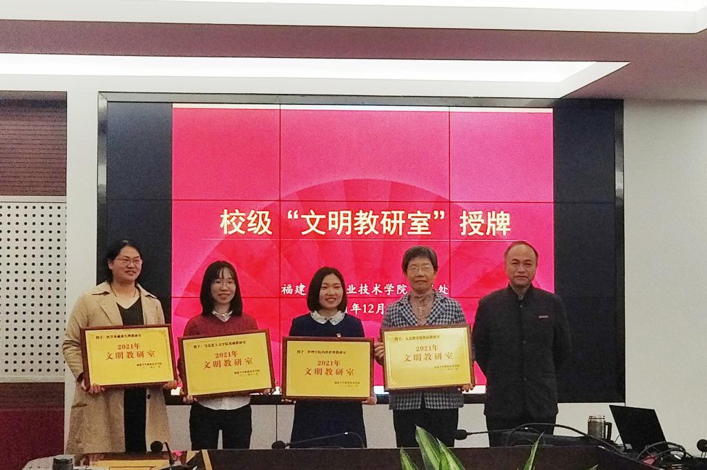 最后,許能鋒為獲評2020年校級“文明教研室”的藥學(xué)院中藥教研室、護理學(xué)院基礎(chǔ)護理教研室、臨床醫(yī)學(xué)系口腔教研室、健康管理系預(yù)防醫(yī)學(xué)教研室,以及獲評2021年校級“文明教研室”的護理學(xué)院內(nèi)科護理教研室、馬克思主義學(xué)院基礎(chǔ)教研室、醫(yī)學(xué)基礎(chǔ)部生理教研室、人文教學(xué)部外語教研室授牌。