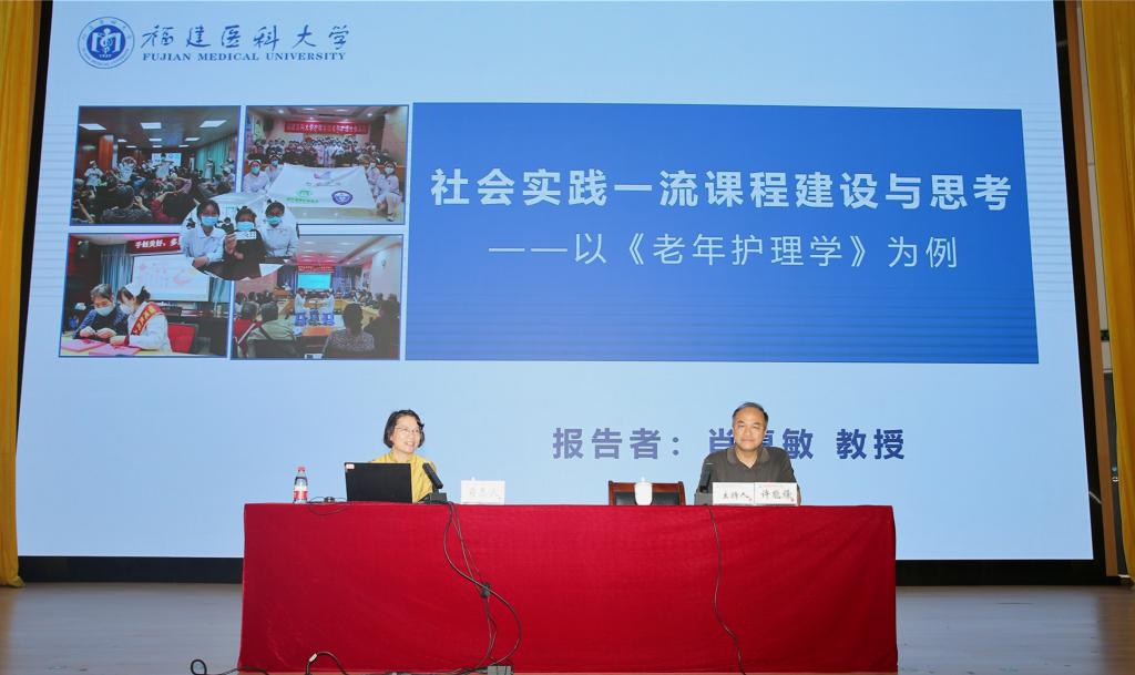 肖惠敏教授重點(diǎn)圍繞社會(huì)實(shí)踐課程內(nèi)涵式高質(zhì)量發(fā)展以及社會(huì)性實(shí)踐教學(xué)模式兩個(gè)方面,為教師們解讀服務(wù)性學(xué)習(xí)的概念以及服務(wù)性學(xué)習(xí)必須具備的五個(gè)內(nèi)涵特征,細(xì)致講解服務(wù)性學(xué)習(xí)的具體實(shí)施步驟。她還以福建醫(yī)科大學(xué)《老年護(hù)理學(xué)》課程的社會(huì)實(shí)踐活動(dòng)為例,分享了社會(huì)實(shí)踐課程建設(shè)的基本思路和過程。