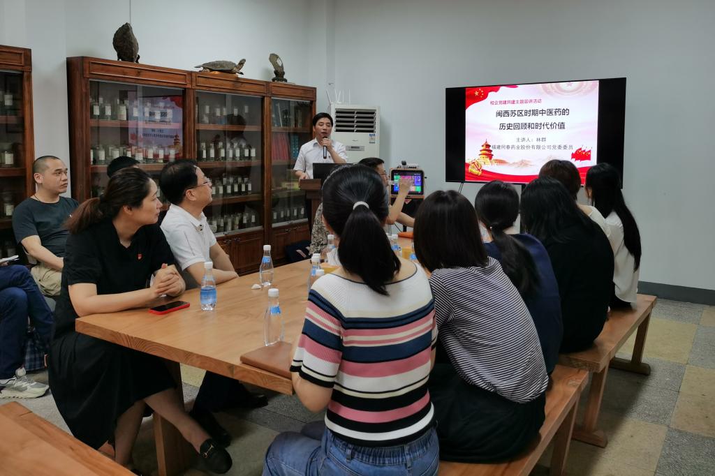 活動伊始,福建同春藥業(yè)股份有限公司黨委委員、福州同春中藥有限公司董事長林群以《閩西蘇區(qū)時期中醫(yī)藥的歷史回顧和時代價值》為主題給全體黨員上了一堂精彩的黨課。林群詳細(xì)講述了中醫(yī)藥在中央蘇區(qū)(福建)所發(fā)揮出的重要作用與力量,以及軍隊(duì)在缺醫(yī)少藥、衛(wèi)生條件落后的狀況下,依靠群眾,不畏困難,開拓醫(yī)藥衛(wèi)生事業(yè)的奮斗歷程。此次黨課使黨員們對中醫(yī)藥文化有了更深的認(rèn)識,并激勵大家凝心聚力推動中醫(yī)藥事業(yè)傳承創(chuàng)新發(fā)展。