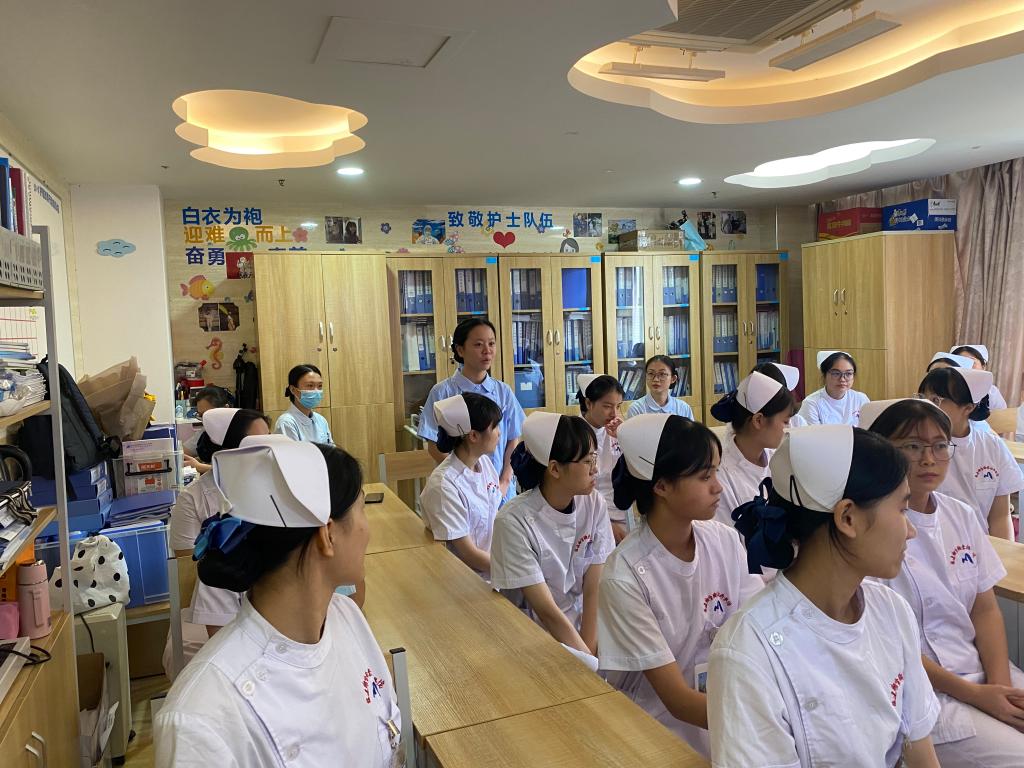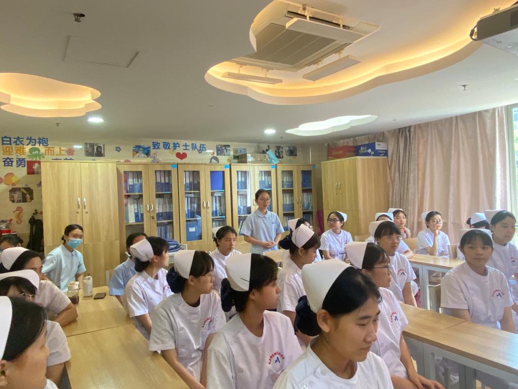 開班儀式上,黃湘暉對同學(xué)們的到來表示熱烈歡迎,希望同學(xué)們多學(xué)多看多聽多問,努力提升自身綜合素質(zhì)。曾曉輝向同學(xué)們講述了醫(yī)院近年來在教科研方面取得的成就,希望同學(xué)們要相信選擇,堅定信心,沉下心來安心學(xué)習(xí),努力夯實(shí)理論和臨床技能基礎(chǔ),成為一名高素質(zhì)的護(hù)理技術(shù)人才。