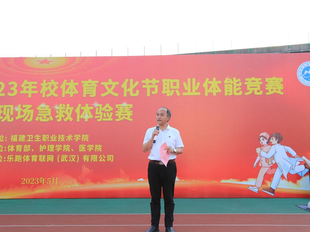 5月18日,由體育部、護(hù)理學(xué)院、醫(yī)學(xué)院承辦的校2023年體育文化節(jié)職業(yè)體能競技賽——模擬現(xiàn)場急救體驗(yàn)賽在田徑場拉開帷幕。校長許能鋒、樂跑體育互聯(lián)網(wǎng)(武漢)有限公司科研專家郭博士、各院系負(fù)責(zé)人出席活動(dòng),體育部全體教師與護(hù)理學(xué)院張璟、翁先鳳老師擔(dān)任裁判,各院系共20支代表隊(duì)、100名學(xué)生參加比賽。