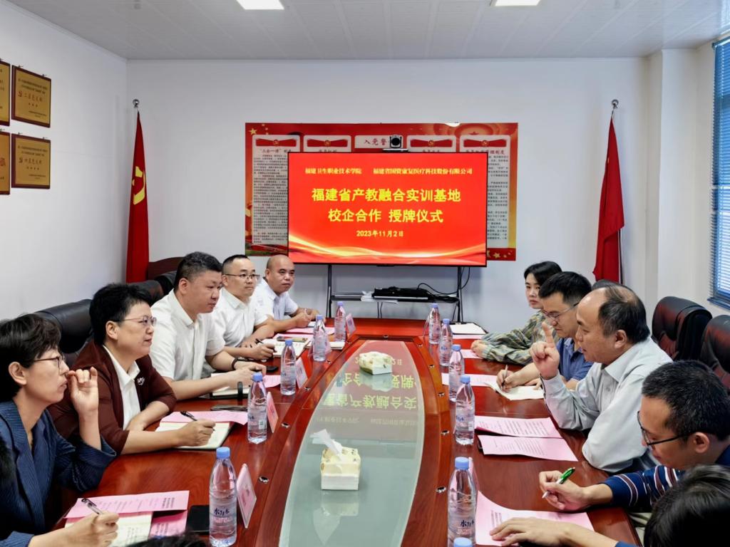 共建產(chǎn)教融合實(shí)訓(xùn)基地,是貫徹落實(shí)職業(yè)教育改革和發(fā)展的重要舉措,是進(jìn)一步深化“產(chǎn)教融合、產(chǎn)學(xué)合作”改革的有力抓手,是擴(kuò)大探索校企深度融合的有益嘗試。11月2日,我校與福建省國資康復(fù)醫(yī)療科技股份有限公司舉行康復(fù)專業(yè)群產(chǎn)教融合實(shí)訓(xùn)基地授牌儀式。校長許能鋒,省國資康復(fù)公司董事長林秀蓮、總經(jīng)理吳秀雄、黨總支副書記程琛,雙方部門負(fù)責(zé)人及專業(yè)帶頭人、專業(yè)教師等參加此次活動(dòng)。