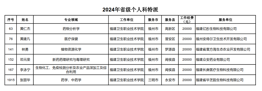 近日,福建省科技特派員選認結果公布,學校黃仁杰、李泳寧、鄧元榮、黃建凡、林勇、張麗華6名教師獲選2024年省級個人科技特派員;黃仁杰等3名教師組成的“體外診斷試劑產業(yè)化科技服務”團隊和李泳寧等4名教師組成的“醫(yī)療產品開發(fā)創(chuàng)新”團隊獲選省級團隊科技特派員。學校省級團隊科技特派員選認實現新的突破。