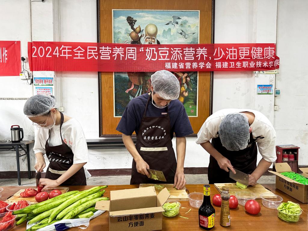 為貫徹落實(shí)《健康中國(guó)行動(dòng)(2019-2030年)》和《國(guó)民營(yíng)養(yǎng)計(jì)劃(2017-2030年)》,推廣普及《中國(guó)居民膳食指南(2022)》核心信息,公共衛(wèi)生與健康管理學(xué)院醫(yī)學(xué)營(yíng)養(yǎng)教研室與第二黨支部帶領(lǐng)黨員教師、醫(yī)學(xué)營(yíng)養(yǎng)專業(yè)學(xué)生,聯(lián)合福建省營(yíng)養(yǎng)師協(xié)會(huì)、福建長(zhǎng)富乳品有限公司共同開(kāi)展?fàn)I養(yǎng)宣教系列活動(dòng),圍繞2024年全民營(yíng)養(yǎng)周暨“5·20”中國(guó)學(xué)生營(yíng)養(yǎng)日“奶豆添營(yíng)養(yǎng),少油更健康”主題,倡導(dǎo)減油、增豆、加奶的營(yíng)養(yǎng)理念。