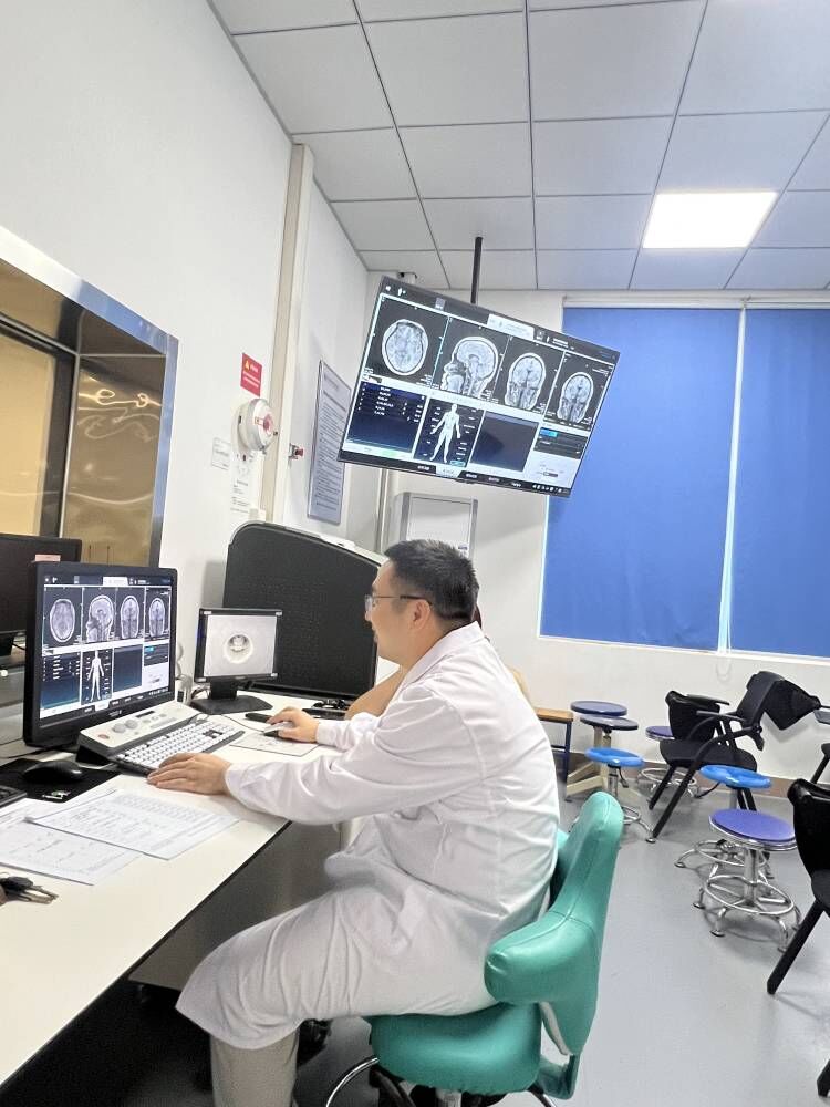 顱腦磁共振檢查共有6名教職工報名參與,學(xué)生志愿者為教職工現(xiàn)場講解MRI檢查注意事項并協(xié)助MRI檢查定位。影像教研室的老師們通過仔細觀察影像數(shù)據(jù),給予教職工耐心的解答和細致的指導(dǎo),建議無病早預(yù)防,有病早發(fā)現(xiàn)、早干預(yù)、早治療。