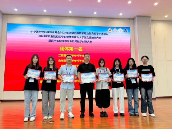 9月19日至22日,2024年職業(yè)院校醫(yī)學影像技術(shù)專業(yè)大學生實踐技能大賽在江西上饒舉行,我校醫(yī)學技術(shù)與工程學院醫(yī)學影像技術(shù)專業(yè)獲得團體一等獎,并獲單項一等獎三項、三等獎兩項的好成績,杜世遠、曾良成和吳沁三位老師獲得“優(yōu)秀指導教師”榮譽稱號。