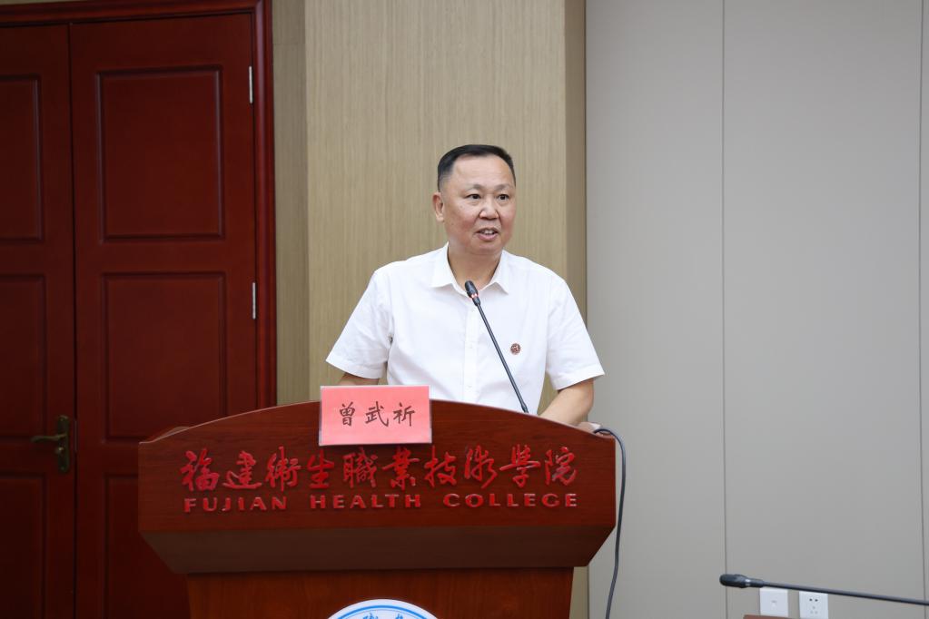 曾武祈代表學(xué)校對(duì)福建醫(yī)科大學(xué)附屬口腔醫(yī)院的支持表示感謝,對(duì)口腔護(hù)理方向訂單班的同學(xué)們表示祝賀。他表示,福建醫(yī)科大學(xué)附屬口腔醫(yī)院是省內(nèi)頂尖、國內(nèi)知名的口腔??漆t(yī)院,擁有雄厚的臨床實(shí)力、先進(jìn)的診療技術(shù)、規(guī)范的管理體系和高水平的專家團(tuán)隊(duì),能與這樣優(yōu)秀的行業(yè)翹楚開展深度合作,共同培養(yǎng)口腔護(hù)理人才,正是我校深化教育教學(xué)改革、精準(zhǔn)對(duì)接行業(yè)需求、推動(dòng)專業(yè)建設(shè)與產(chǎn)業(yè)升級(jí)同步發(fā)展的重要實(shí)踐。他寄語同學(xué)們要好好珍惜學(xué)習(xí)機(jī)會(huì),志存高遠(yuǎn)、勤學(xué)苦練、尊師重教、嚴(yán)守紀(jì)律、努力成長(zhǎng)為具備“仁心仁術(shù)”的優(yōu)秀口腔護(hù)理人才。