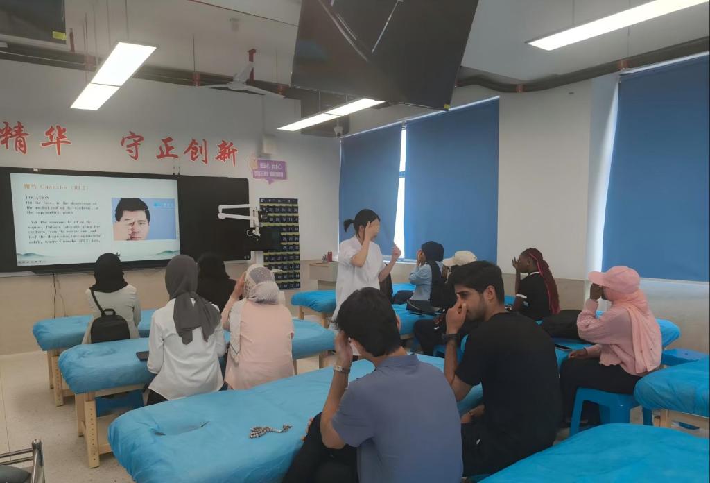 近日,福建醫(yī)科大學(xué)海外教育學(xué)院14名預(yù)科班外籍學(xué)生走進(jìn)我校“皇甫謐針灸推拿學(xué)堂”,開啟中醫(yī)藥文化沉浸式研學(xué)。此次活動以頭面部腧穴的臨床應(yīng)用為主題,通過理論教學(xué)與實踐操作相結(jié)合,系統(tǒng)展現(xiàn)中醫(yī)經(jīng)絡(luò)學(xué)說的獨(dú)特魅力。
