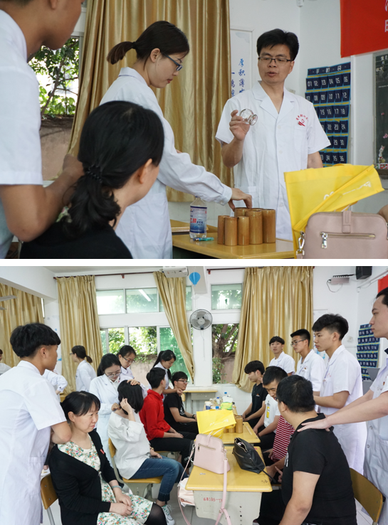 在福信院團(tuán)委的宣傳下,義診及職教活動(dòng)聚集了許多福信院師生前來體驗(yàn)??到【銟凡康某蓡T為福信師生們送去保健推拿、拔罐等義診項(xiàng)目。臨床醫(yī)學(xué)系陳銘、徐麗鶯、吳艷芳三位老師在現(xiàn)場與老師同學(xué)親切交流,對師生們常見的勞損癥狀提供解答并給出護(hù)理建議。