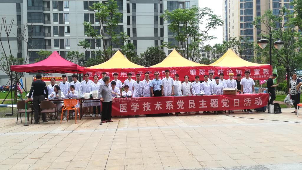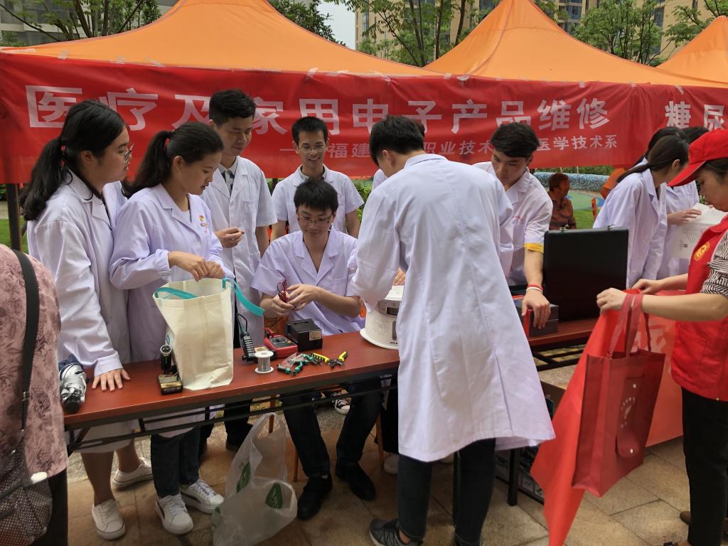 為積極響應(yīng)2019年全國(guó)職業(yè)教育活動(dòng)周的號(hào)召,充分展示我院辦學(xué)特色和成果,發(fā)揮我院醫(yī)學(xué)職業(yè)技能優(yōu)勢(shì),推動(dòng)“兩學(xué)一做”學(xué)習(xí)教育常態(tài)化制度化,充分發(fā)揮基層黨組織戰(zhàn)斗堡壘作用和黨員的先鋒模范作用,醫(yī)學(xué)技術(shù)系黨總支組織25位專(zhuān)業(yè)教師(其中,教師黨員19名)帶領(lǐng)48名學(xué)生(其中,學(xué)生入黨積極分子39名)于2019年5月16日前往醫(yī)技系共建合作單位福州市晉安區(qū)茶園街道所屬的洋下東社區(qū)洋下花園小區(qū)和東浦社區(qū)開(kāi)展6項(xiàng)職教活動(dòng)。