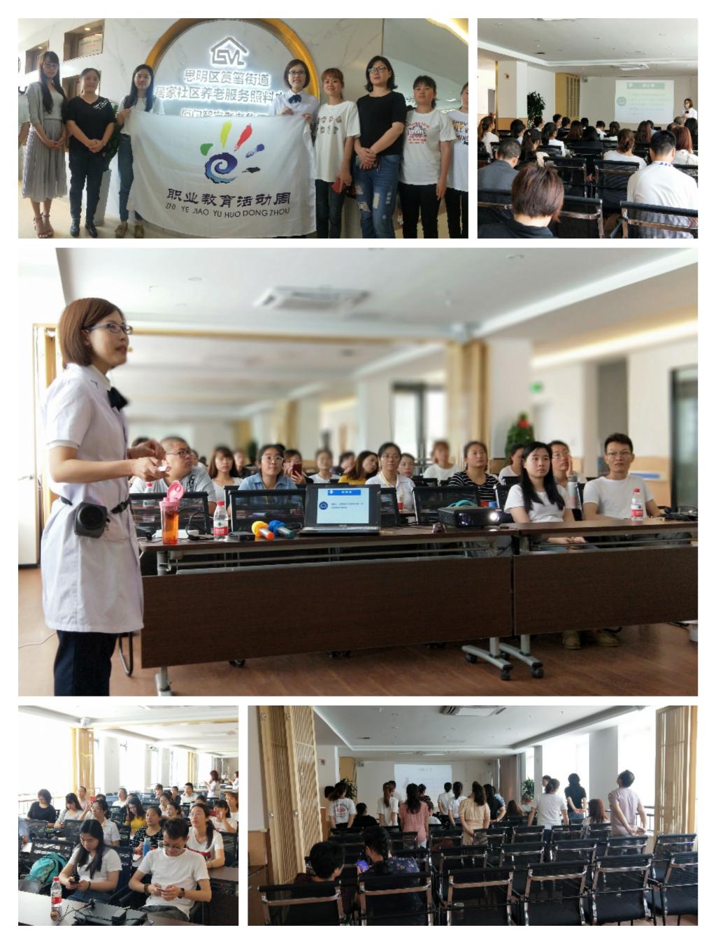 為了積極響應(yīng)2019年全國(guó)職業(yè)教育活動(dòng)周的號(hào)召,傳遞敬老愛(ài)親的傳統(tǒng)美德,進(jìn)一步提高社區(qū)助老員的居家養(yǎng)老綜合素質(zhì)和專(zhuān)業(yè)水平。5月13日至14日,來(lái)自臨床醫(yī)學(xué)系“肢體功能障礙康復(fù)功法創(chuàng)編”科技創(chuàng)新團(tuán)隊(duì)的徐麗鶯、鄭松老師,前往廈門(mén)智宇孝老集團(tuán)筼筜照料中心,對(duì)來(lái)自6個(gè)區(qū)的助老員進(jìn)行為期2天的培訓(xùn)。首批共有24名助老員參加系統(tǒng)的、有針對(duì)性的康復(fù)功法培訓(xùn)。