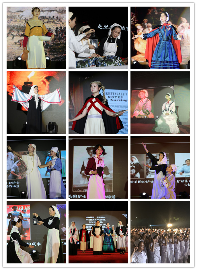 絢麗的燈光、動(dòng)感的音樂(lè)、逼真的舞臺(tái)效果……晚會(huì)以熱情舞蹈開(kāi)場(chǎng),吸引了觀眾們的眼球。接著,護(hù)理系師生邀請(qǐng)護(hù)理前輩傾情演出的《護(hù)士服裝演變史》走秀,通過(guò)展示不同年代的護(hù)士服裝演繹了南丁格爾的傳奇一生,以此來(lái)致敬南丁格爾,頌揚(yáng)和傳承醫(yī)護(hù)職業(yè)的高尚精神,令在場(chǎng)觀眾深受鼓舞,引發(fā)全場(chǎng)轟動(dòng)。“終身純潔,忠貞職守,盡力提高護(hù)理之標(biāo)準(zhǔn)……”隨后,莊嚴(yán)肅穆的授帽和宣誓儀式則將整場(chǎng)晚會(huì)推向了高潮。當(dāng)教師代表們?yōu)閷W(xué)生戴上潔白神圣的燕帽后,全體護(hù)理師生肅然起立,共同重溫了《南丁格爾誓言》,她們的誓言鏗鏘有力,響徹在整個(gè)校園。