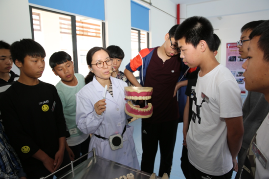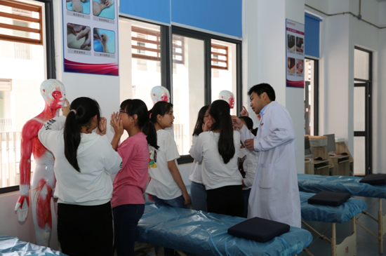 中學(xué)生們分組參觀臨床、口腔、針推和康復(fù)等不同專業(yè)技能訓(xùn)練場所,我院專業(yè)教師向他們講解典型的專業(yè)技能,同時播放技能視頻加深印象。中學(xué)生們在專業(yè)老師的指導(dǎo)下,邊學(xué)邊做,體驗各項專業(yè)技能,如辨認穴位、人體按摩、心肺復(fù)蘇術(shù)、巴氏刷牙等?;顒咏Y(jié)束后,許多中學(xué)生仍然興趣未減,并表示收獲很大,希望以后學(xué)校能多開展這類活動。