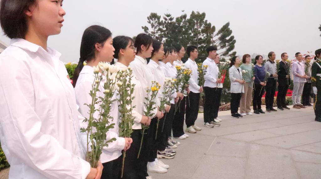 在靜穆的陵園中全體人員以崇高的敬意手捧花束,向烈士紀念碑有序走去,行鞠躬禮,奏唱國歌,追憶先烈,表達對烈士的崇高敬意和深切悼念之情。