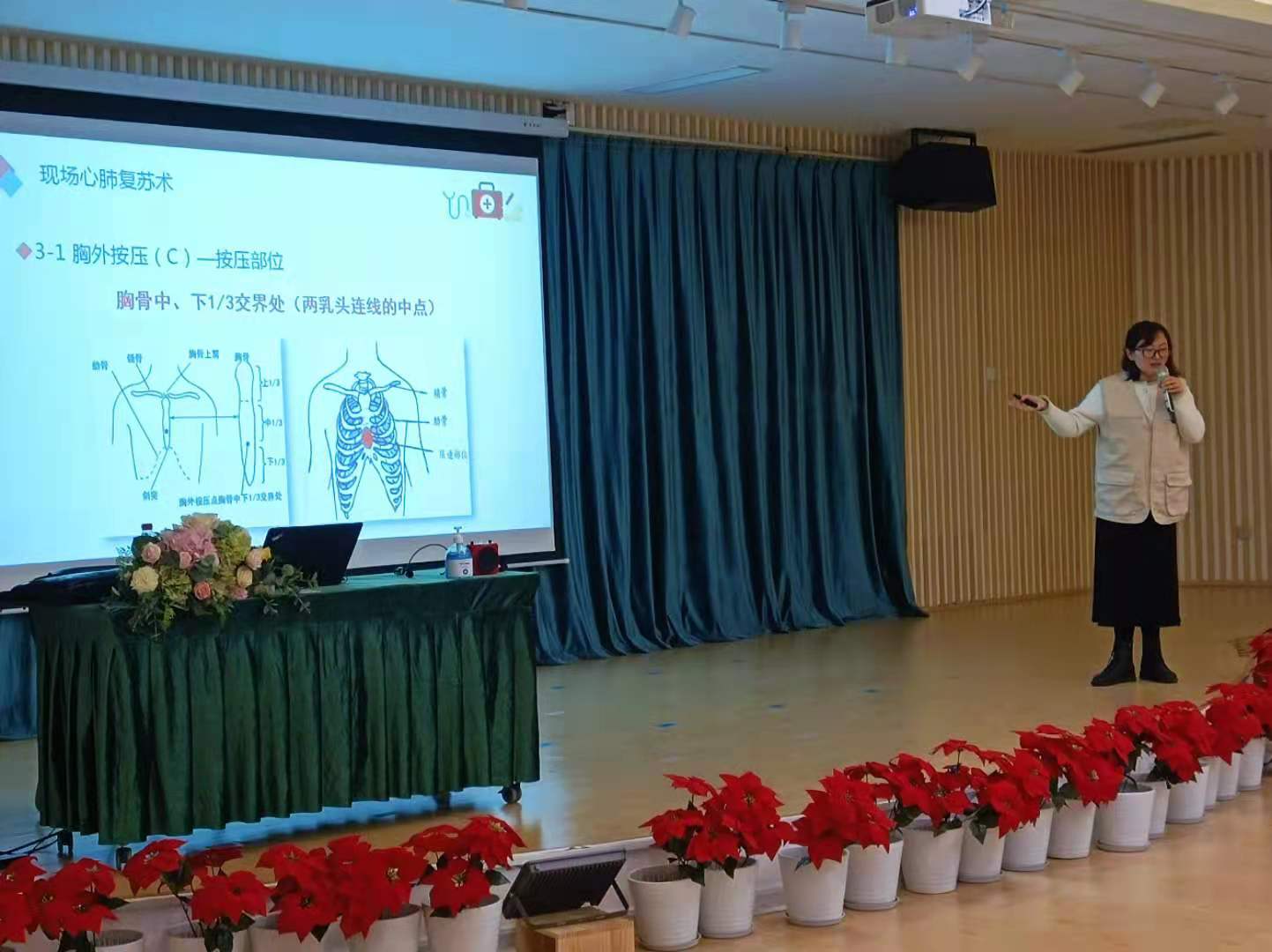 護(hù)理學(xué)院第二黨支部宣傳委員向月同志講解心肺復(fù)蘇急救技術(shù)
