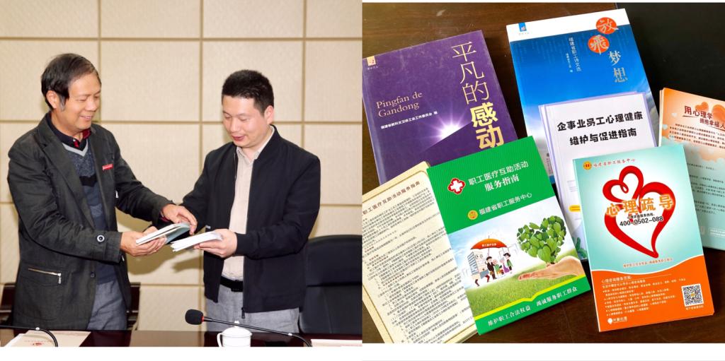 江云向我校贈(zèng)送了《職工醫(yī)療互助活動(dòng)服務(wù)指南》《企事業(yè)員工心理健康維護(hù)與促進(jìn)指南》等學(xué)習(xí)宣傳資料,希望我校發(fā)揮醫(yī)學(xué)院校專(zhuān)業(yè)特色優(yōu)勢(shì),與省職工服務(wù)中心聯(lián)合面向社會(huì)開(kāi)展職工心理健康服務(wù)工作。