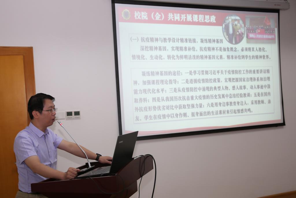 聽(tīng)完江川同志的感人事跡,何舒瀾同志主講了題為“校院共揚(yáng)抗疫精神,引領(lǐng)價(jià)值精準(zhǔn)育人”的微黨課,他認(rèn)為抗疫精神不是抽象概念,必須將其情境化、生動(dòng)化,轉(zhuǎn)化為鮮明的思政元素精準(zhǔn)補(bǔ)給到學(xué)生的精神世界,才能發(fā)揮出顯著的育人成效,提升堅(jiān)定正確的政治認(rèn)同,樹(shù)立丹心報(bào)國(guó)的學(xué)術(shù)志向。