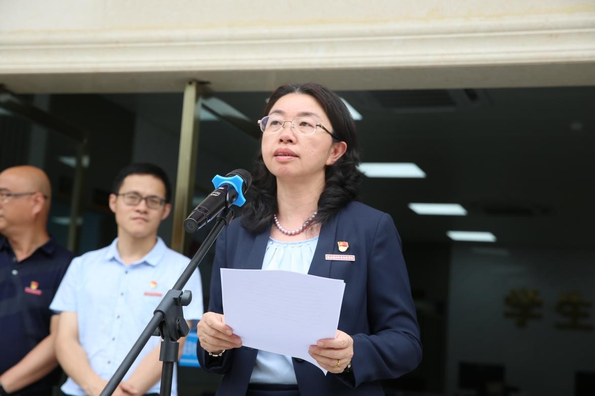 在熱烈的掌聲中,黃銘珊與學(xué)生代表一起揭下覆蓋在牌匾上的紅綢,“學(xué)生服務(wù)中心”6個大字閃亮奪目。