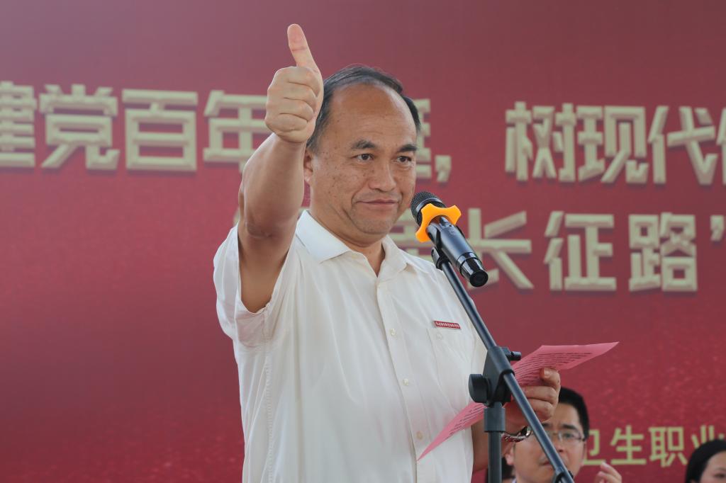在開幕式上,副院長鄭翠紅致辭,在中國共產(chǎn)黨成立100周年之際,我們以“答黨史、急行軍”的特殊方式,重走長征路,重溫那段可歌可泣的歷史,領(lǐng)悟偉大的長征精神,在新的長征路上繼續(xù)奮勇前進。她希望參賽師生賽出信念和忠誠,跟黨走,踐行“教書育人”的職責(zé),不負(fù)人民所托,走好職業(yè)教育的長征路;賽出知識和本領(lǐng),養(yǎng)成自學(xué)、好學(xué)的習(xí)慣,深入學(xué)習(xí)黨史、以史鑒今、以史增智,在各自的崗位上掌握新方法、增長新才干、解決新問題;賽出快樂和友情,不僅“堅韌不拔,自強不息,勇往直前”,也要“顧全大局、嚴(yán)守紀(jì)律、親密團結(jié)”。