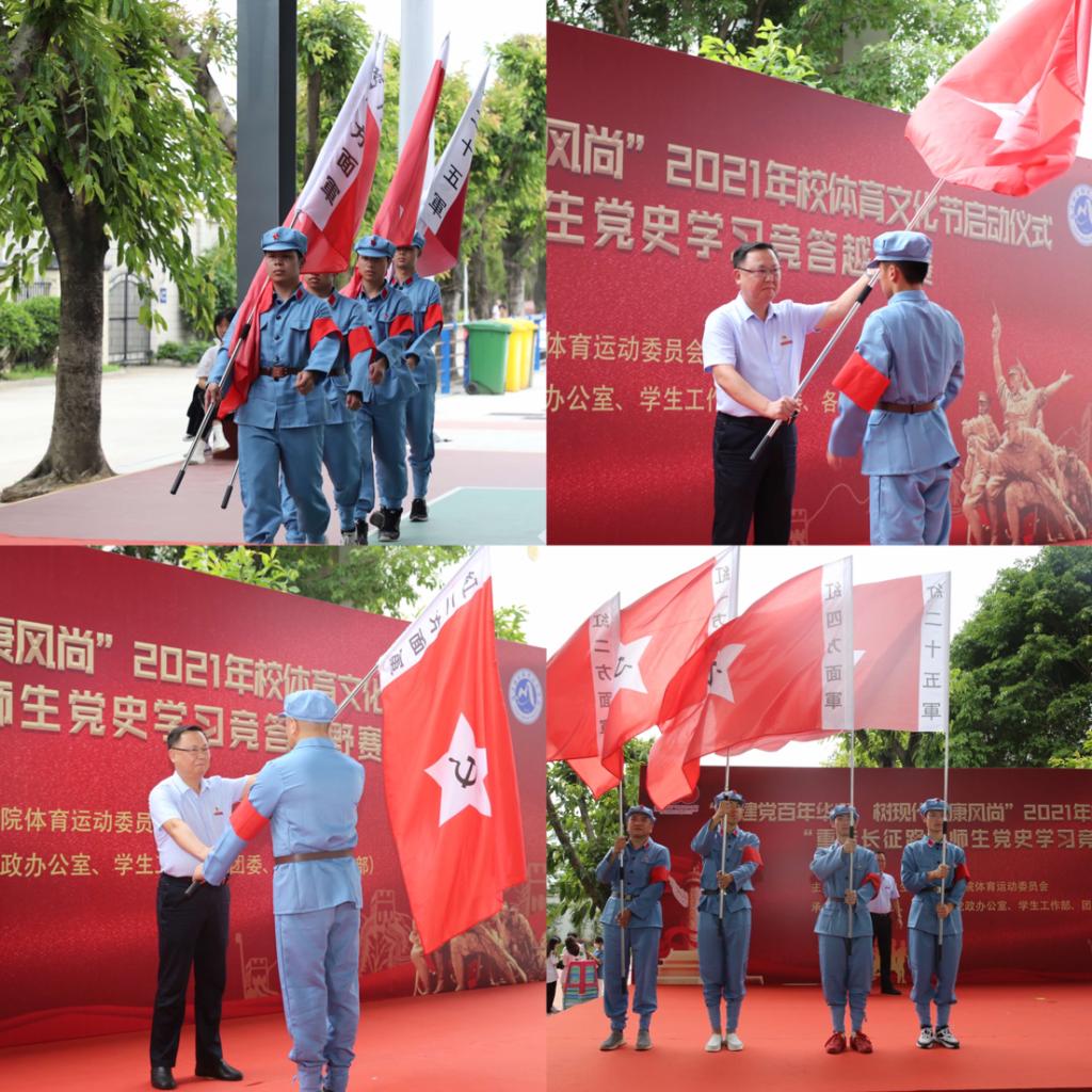 為引導(dǎo)廣大師生積極參與體育運動,增強身體素質(zhì),促進身心健康發(fā)展,推動學(xué)校的體育文化發(fā)展,2021年5月27日下午,學(xué)校舉行“慶中國共產(chǎn)黨成立百年華誕,樹現(xiàn)代健康風(fēng)尚”2021年校體育文化節(jié)啟動儀式及“重走長征路”之師生黨史學(xué)習(xí)競答越野賽。校領(lǐng)導(dǎo)、校體委會委員、師生代表共近200人參加了本次活動。