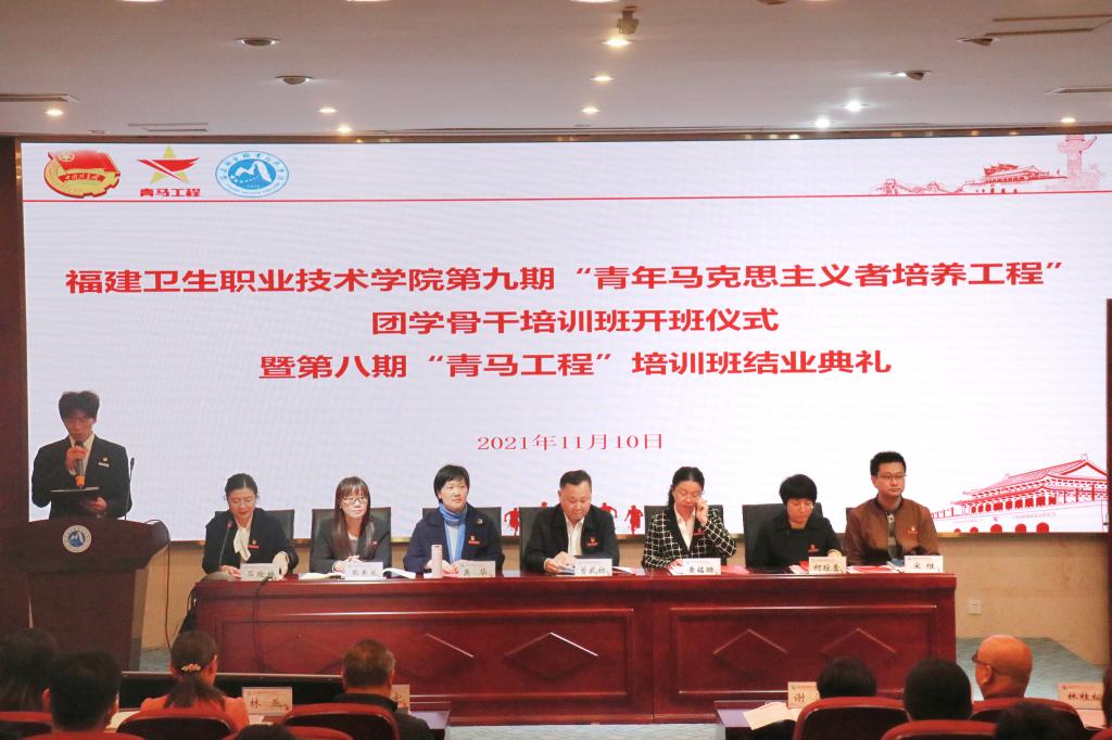 11月10日晚,我校第九期“青年馬克思主義者培養(yǎng)工程”團(tuán)學(xué)骨干培訓(xùn)班開班儀式暨第八期“青馬工程”培訓(xùn)班結(jié)業(yè)典禮在實訓(xùn)樓四樓會議室順利舉行。黨委書記曾武祈、副校長黃銘珊出席儀式,黨委組織統(tǒng)戰(zhàn)部、黨委宣傳部、學(xué)生工作部、馬克思主義學(xué)院、團(tuán)委和各二級院系黨團(tuán)總支負(fù)責(zé)人、師生代表160人參加儀式。