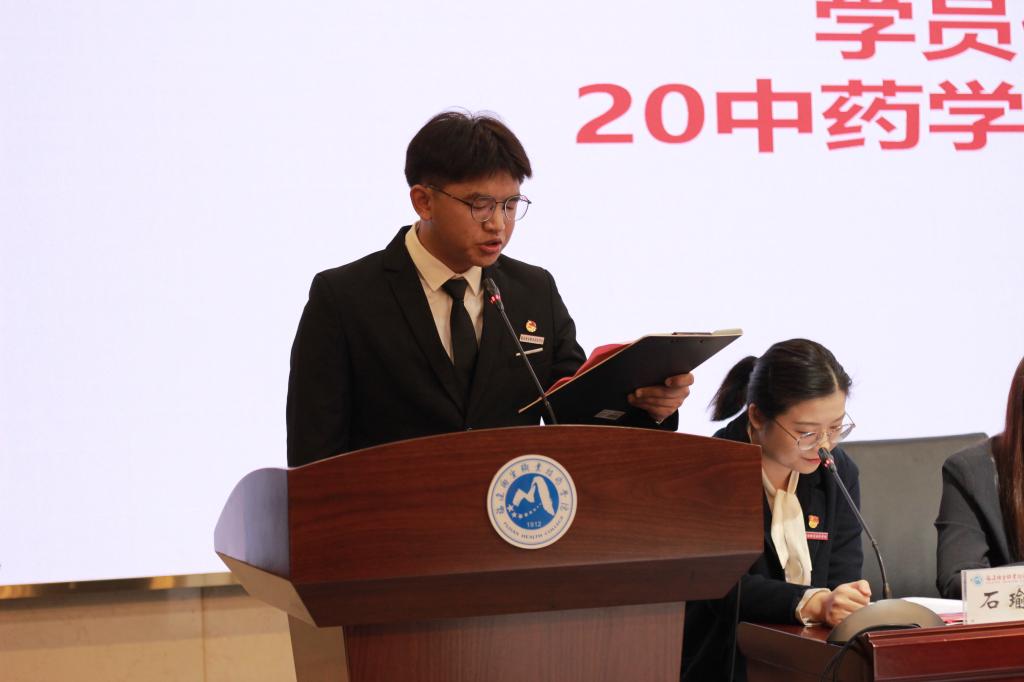20中藥學(xué)302班李忠緒同學(xué)作為第九期青馬班學(xué)生代表莊嚴(yán)承諾:要時刻以青年馬克思主義者的標(biāo)準(zhǔn)來衡量自己,要認(rèn)真學(xué)習(xí)和領(lǐng)會黨的創(chuàng)新理論。