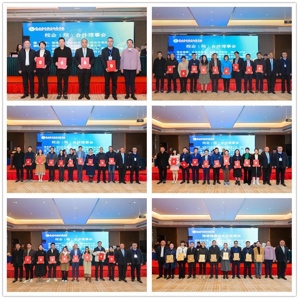 會議組織審議了學校校企(院)合作理事會、福建健康服務職業(yè)教育集團成員調(diào)整名單及修訂后的章程,并為成員頒發(fā)聘書及證書。