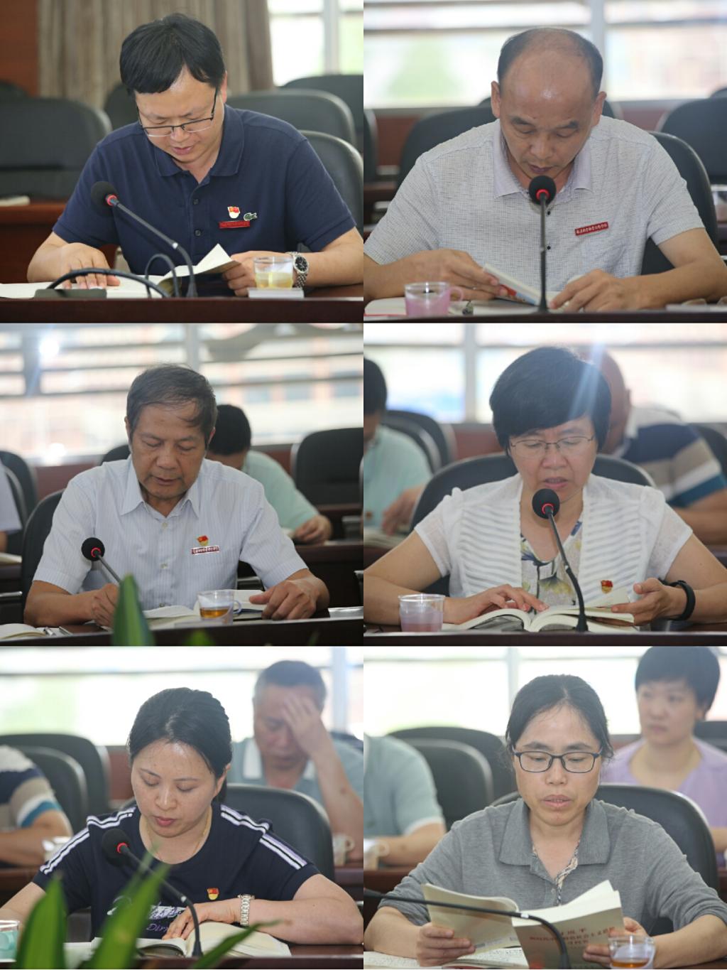 會上,葉海、蘇愛華、洪常青、謝濤、陳俊穎、阮秋容六位同志依次誦讀領(lǐng)學《習近平新時代中國特色社會主義思想學習問答》中部分篇目。