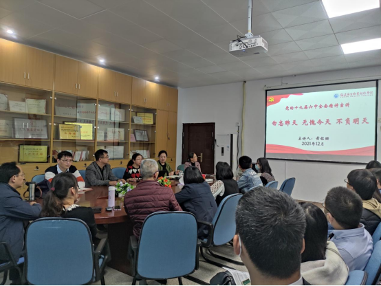 12月16日,校黨委委員黃銘珊以《勿忘昨天 無愧今天 不負(fù)明天》為主題,為醫(yī)學(xué)技術(shù)系黨員宣講黨的十九屆六中全會(huì)精神。