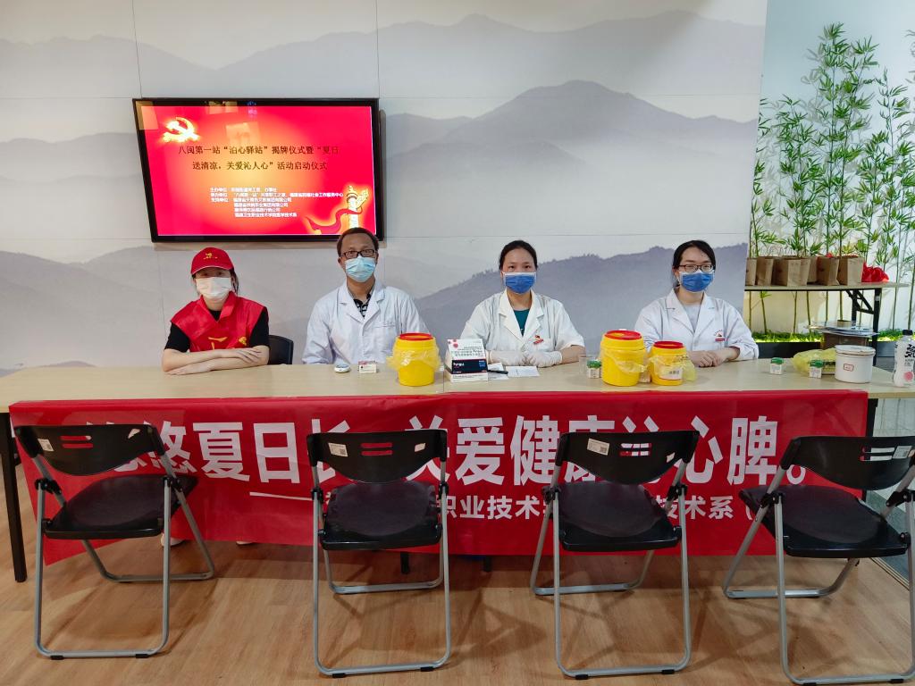 7月14日,醫(yī)學(xué)技術(shù)系黨總支黨員師生前往福州火車(chē)站開(kāi)展“悠悠夏日長(zhǎng),關(guān)愛(ài)健康沁心脾”義診活動(dòng)。