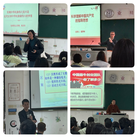 本期培訓(xùn)班邀請(qǐng)馬克思主義學(xué)院老師為學(xué)員講授黨的基本理論知識(shí)。陳洪月老師以《實(shí)現(xiàn)中華民族偉大復(fù)興是近代以來(lái)中華民族最偉大的夢(mèng)想》為題,宣講習(xí)近平新時(shí)代中國(guó)特色社會(huì)主義思想;胡濟(jì)林老師以《科學(xué)理解中國(guó)共產(chǎn)黨的指導(dǎo)思想》為題,引導(dǎo)學(xué)員們?nèi)鎸W(xué)習(xí)黨的指導(dǎo)思想;龍慧以時(shí)間為脈絡(luò),深入解讀《黨史上的三個(gè)歷史決議》;江洪老師講授《馬克思主義宗教理論與黨的宗教政策》,引導(dǎo)學(xué)員們樹(shù)立科學(xué)世界觀。