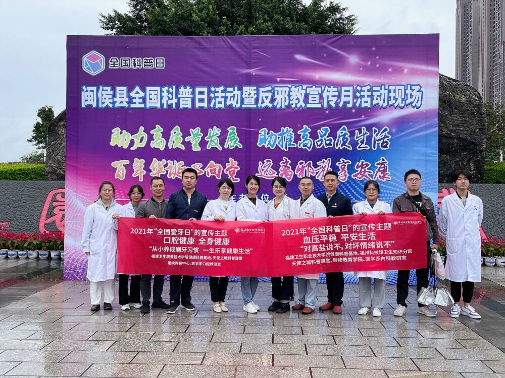 為推進(jìn)慢病知識(shí)的基層普及,提高基層群眾的慢病管理能力,充分發(fā)揮黨員的先鋒模范作用、發(fā)揮專業(yè)教師特長,2021年10月22日,醫(yī)學(xué)系黨總支第一黨支部黨員、內(nèi)科教研室教師王芳、彭小蕊隨我校繼續(xù)教育學(xué)院、閩侯縣科協(xié)一行赴閩侯縣民俗園開展“高血壓病防治”科普、義診活動(dòng)。