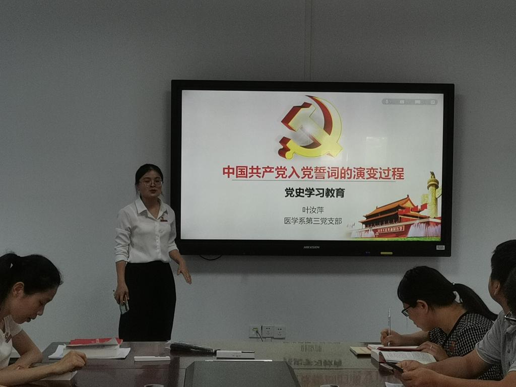 醫(yī)學(xué)系第三黨支部作為“雙帶頭人”支部、省黨建工作樣板支部,積極組織全體黨員師生及入黨積極分子開展《中國共產(chǎn)黨簡史》有聲書錄制活動。大家通過黨史學(xué)習(xí)并錄音,進(jìn)一步感悟初心使命,傳承紅色精神。目前,該有聲書活動已在醫(yī)學(xué)系團(tuán)總支微信公眾號推出兩期,師生中反響熱烈,掀起黨史學(xué)習(xí)教育熱潮。