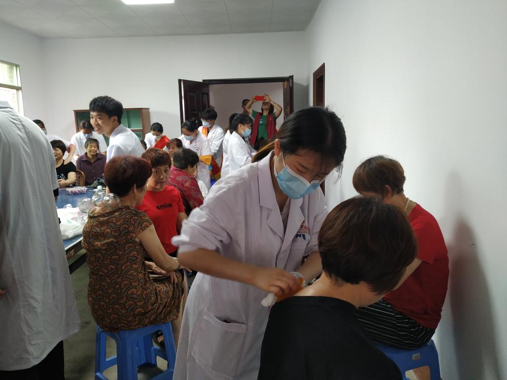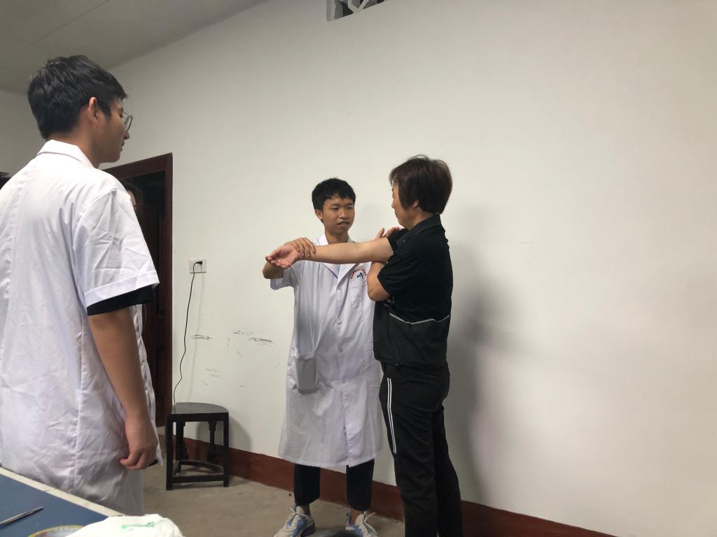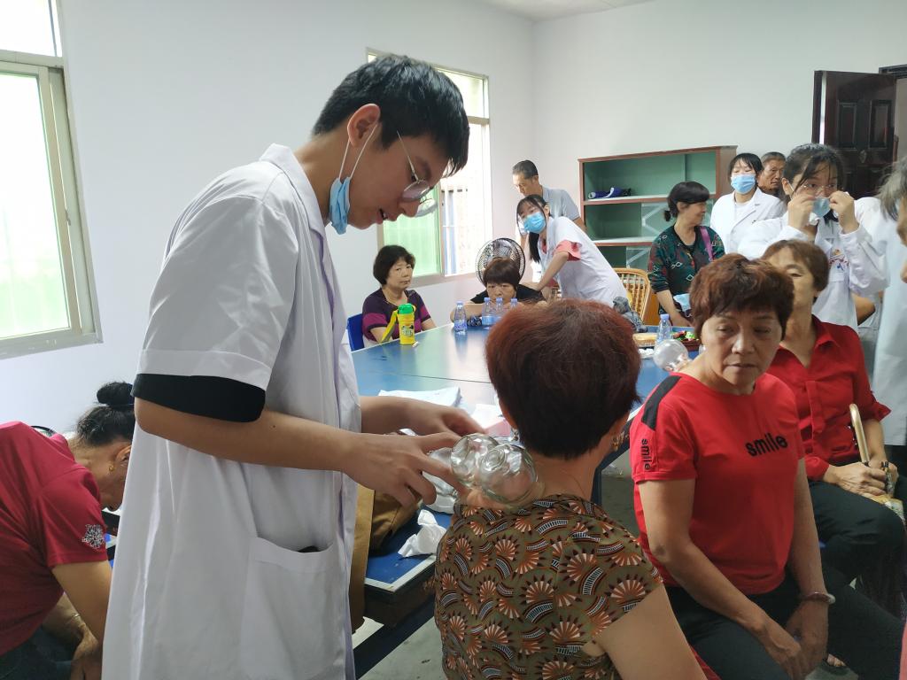 活動中,康健俱樂部社員為徐家村中老年村民送上了中西醫(yī)康復(fù)等一系列義診服務(wù),項目包含頸肩部保健按摩、拔罐療法、刮痧療法、肩周炎功能鍛煉指導(dǎo)及其他常見疾病康復(fù)宣教等。前來咨詢、接受診治的村民絡(luò)繹不絕,針對他們的健康問題,康健俱樂部師生細(xì)致詢問病情、耐心解釋病情及發(fā)展、提出正確合理的健康指導(dǎo)并做相應(yīng)的簡單治療,切實做到把健康送進社區(qū)、服務(wù)群眾。