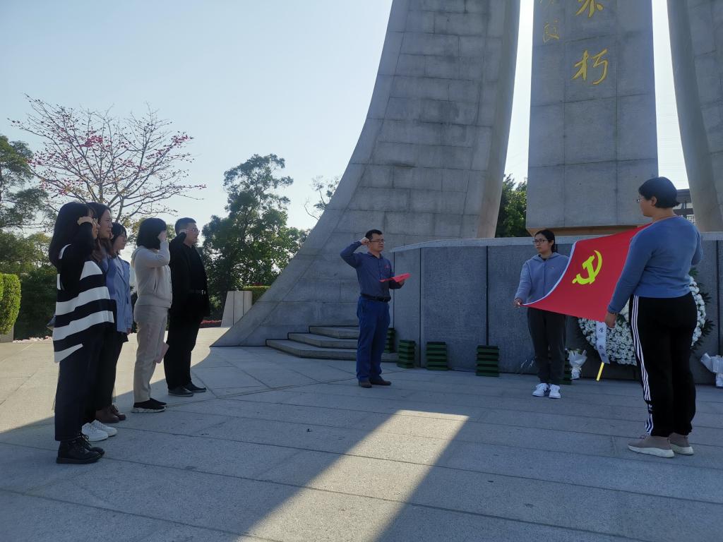 仲春時節(jié),晴空萬里,艷陽高照。全體黨員同志在烈士紀(jì)念碑前進(jìn)行了悼念革命先烈、敬獻(xiàn)花圈儀式,瞻仰烈士紀(jì)念碑,為先烈們默哀,并在支部書記鄧元榮同志帶領(lǐng)下重溫入黨誓詞。整個過程全體黨員同志靜靜肅立,不忘初心、牢記使命。