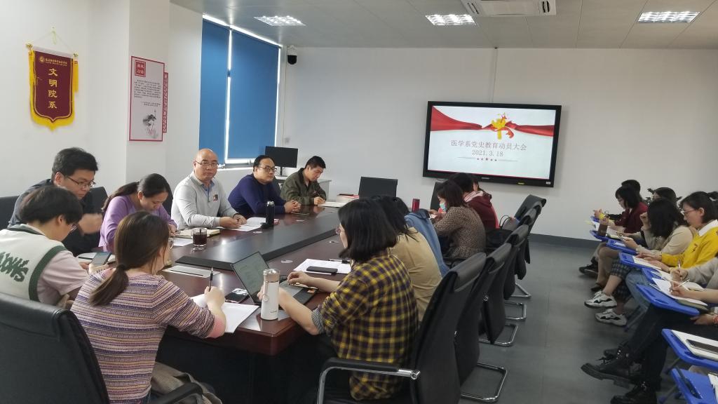3月18日,我系在實訓(xùn)樓311會議室召開醫(yī)學(xué)系黨史學(xué)習(xí)教育動員大會,會議由黨總支書記邱滾忠主持,全系教職工參加了本次動員會。