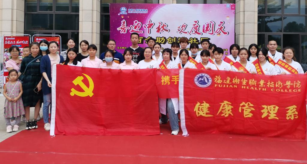 今年是新中國成立71周年。2020年9月26日,福建衛(wèi)生職業(yè)技術(shù)學(xué)院健康管理系“雙帶頭人”工作室(第一黨支部)組織肺結(jié)核防治志愿服務(wù)隊?wèi)?yīng)邀走進(jìn)閩侯荊溪中鐵城小區(qū),把“健康中國”“健康福建”的理念帶進(jìn)基層,融入日常宣教,用實際行動告白偉大祖國。