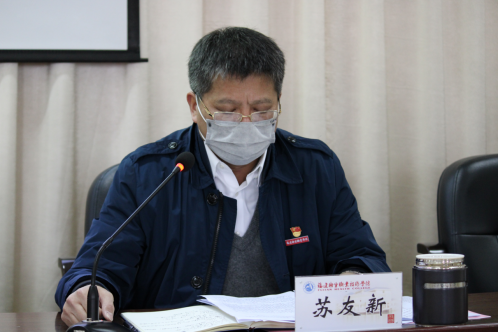 3月31日上午,學(xué)院在行政樓六樓會(huì)議室召開(kāi)2020年全面從嚴(yán)治黨工作會(huì)議,全面總結(jié)回顧了學(xué)院2019年全面從嚴(yán)治黨工作,研究部署學(xué)院2020年全面從嚴(yán)治黨工作。會(huì)議由學(xué)院黨委副書(shū)記、院長(zhǎng)蘇友新主持。