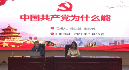 3月30日上午,陳貞健副院長(zhǎng)為健康管理系黨員上黨課,本次黨課在實(shí)習(xí)樓報(bào)告廳舉行,由健康管理系黨總支吳燕玲副書(shū)記主持,健康管理系第一支部、第二支部師生黨員參會(huì)。