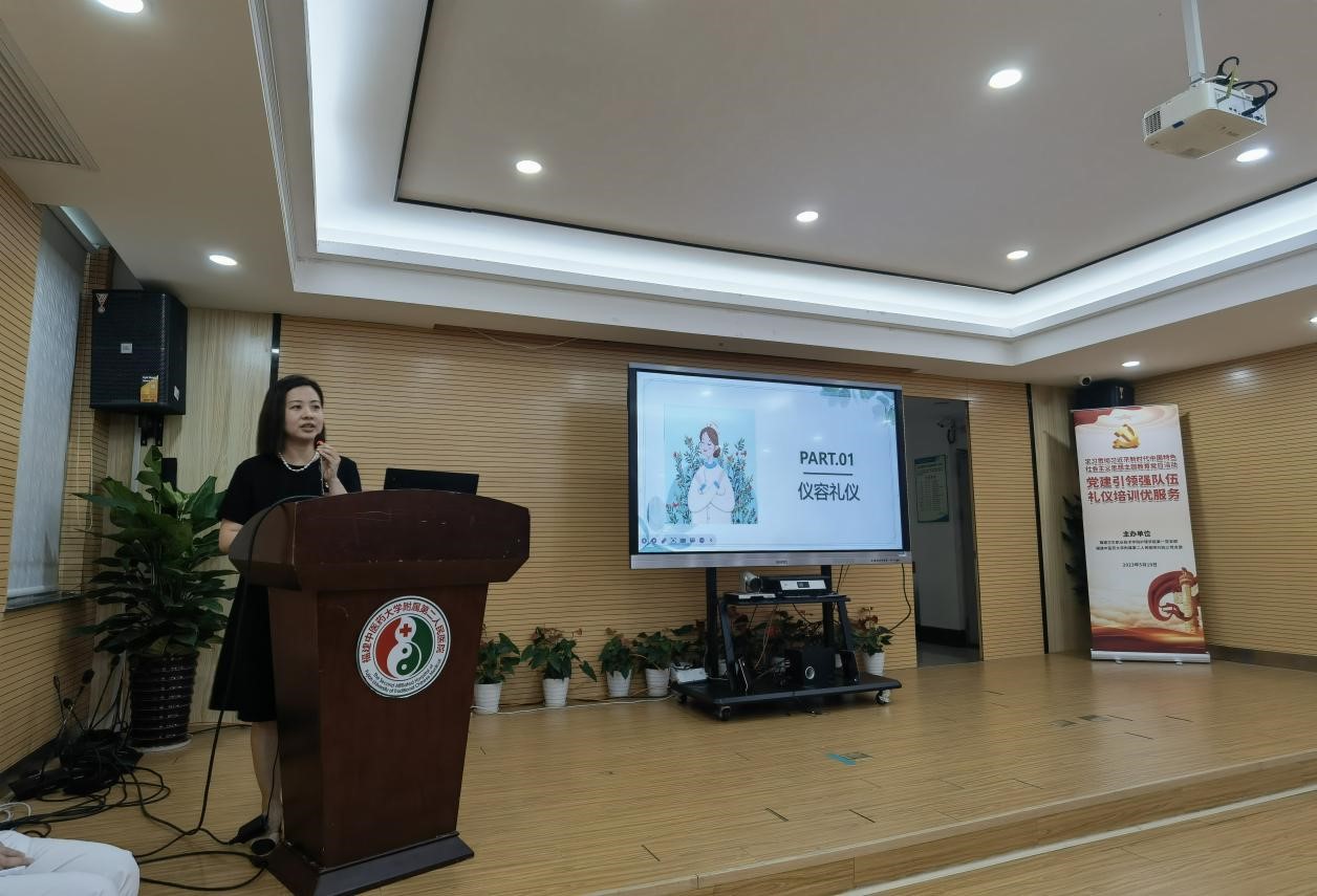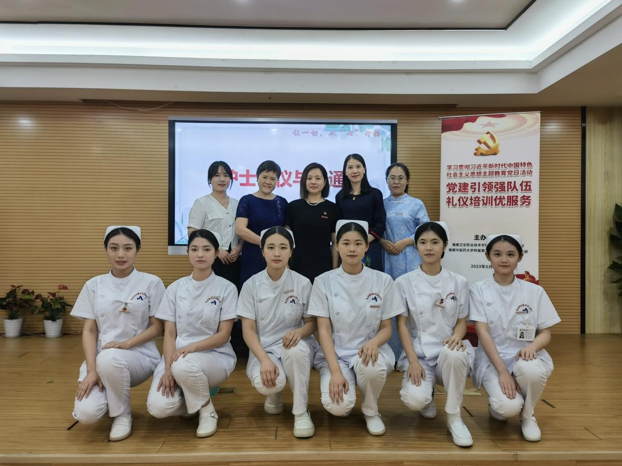 為貫徹落實黨的二十大精神,深入開展學習貫徹習近平新時代中國特色社會主義思想主題教育,增強黨支部的執(zhí)行力和凝聚力,提升黨建工作的生命力和創(chuàng)造力,持續(xù)推進支部建設(shè)與專業(yè)發(fā)展深度融合。2023年5月19日,護理學院第一黨支部開展“黨建引領(lǐng)強隊伍 禮儀培訓優(yōu)服務”主題教育黨日活動。護理學院第一黨支部黨員教師劉菲菲發(fā)揮專業(yè)特長,為福建中醫(yī)藥大學附屬第二人民醫(yī)院全體護士開展護理禮儀與溝通培訓。