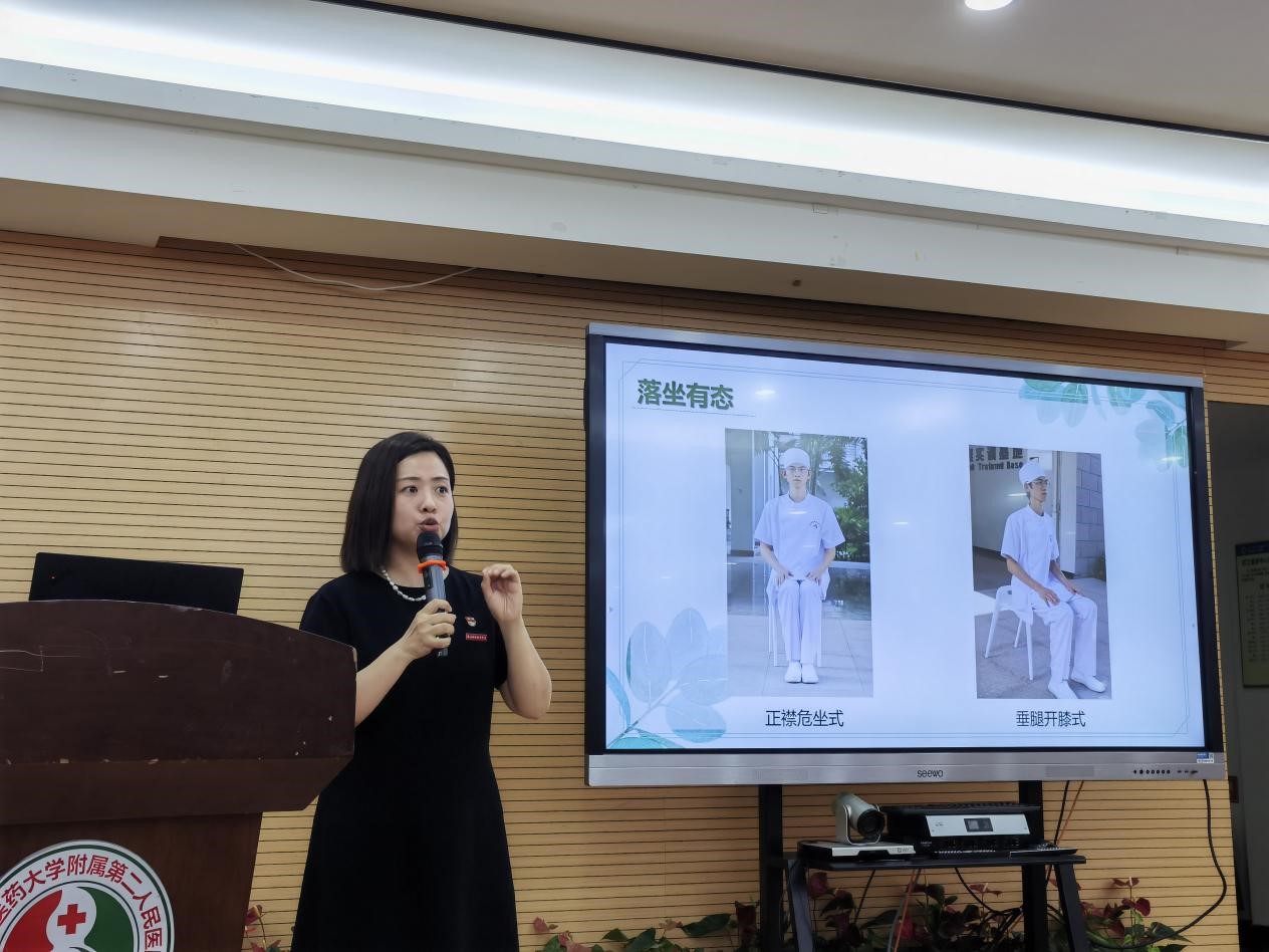 接著,劉菲菲老師就護士的儀容禮儀、服飾禮儀、舉止禮儀和言談禮儀四個方面進行了詳細闡釋。