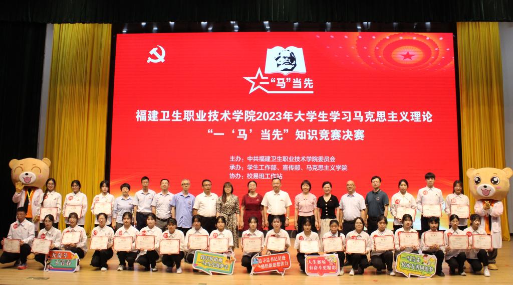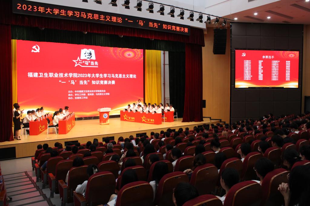 在深入開展學(xué)習(xí)貫徹習(xí)近平新時代中國特色社會主義思想主題教育之際,6月1日下午,由中共福建衛(wèi)生職業(yè)技術(shù)學(xué)院委員會主辦,學(xué)生工作部、宣傳部、馬克思主義學(xué)院承辦,校易班工作站協(xié)辦的福建衛(wèi)生職業(yè)技術(shù)學(xué)院2023年大學(xué)生學(xué)習(xí)馬克思主義理論“一‘馬’當(dāng)先”知識競賽決賽在學(xué)術(shù)報告廳舉行。校黨委書記曾武祈、黨委副書記李美華、副校長黃銘珊,學(xué)生工作部、馬克思主義學(xué)院、團(tuán)委、各院系相關(guān)負(fù)責(zé)人,輔導(dǎo)員及學(xué)生代表觀摩比賽。