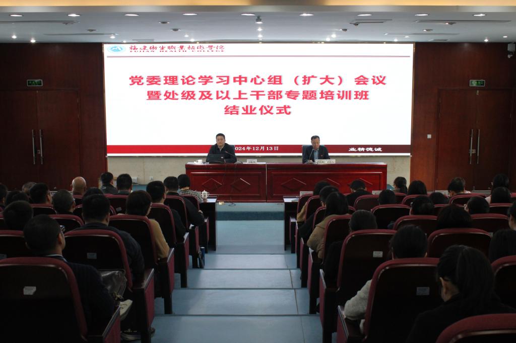 講座結(jié)束后,舉辦了學(xué)校處級及以上干部黨的二十屆三中全會專題培訓(xùn)班結(jié)業(yè)儀式,曾武祈強調(diào)要以此次輔導(dǎo)為契機,運用好專題培訓(xùn)的成果,在全面學(xué)習(xí)把握、貫徹落實上持續(xù)下功夫,堅定不移地把黨的二十屆三中全會精神落實到統(tǒng)一思想上、落實到具體行動上。一要始終堅持深學(xué)細(xì)悟、內(nèi)化于心,永葆對黨的絕對忠誠。帶著感情、帶著使命、帶著信仰,把學(xué)習(xí)黨的二十屆三中全會精神、全國教育大會精神,與學(xué)習(xí)習(xí)近平總書記來閩的重要講話精神緊密結(jié)合起來,一體聯(lián)動學(xué)、深入思考學(xué)、聯(lián)系實際學(xué)。二要始終堅持全員學(xué)習(xí)、全域覆蓋,切實凝聚強大精神力量。學(xué)習(xí)宣傳貫徹黨的二十屆三中全會精神,是一個常學(xué)常新、不斷深化的過程。我們要持續(xù)加大力度、拓展深度、延伸廣度,不斷增強學(xué)習(xí)宣傳的理論深度、實踐力度、情感溫度。三要始終堅持篤信篤行、實干苦干,強化擔(dān)當(dāng)作為推動發(fā)展。學(xué)習(xí)宣傳貫徹黨的二十屆三中全會精神,最關(guān)鍵的是不折不扣抓貫徹、全力以赴抓落實。各二級黨組織、各職能部門要把學(xué)習(xí)貫徹黨的二十屆三中全會精神與謀劃推動學(xué)校高質(zhì)量發(fā)展、抓好當(dāng)前工作緊密結(jié)合起來,按照2024年年終工作和2025年開局工作的要求,找準(zhǔn)工作的切入點、結(jié)合點、著力點抓好貫徹落實。