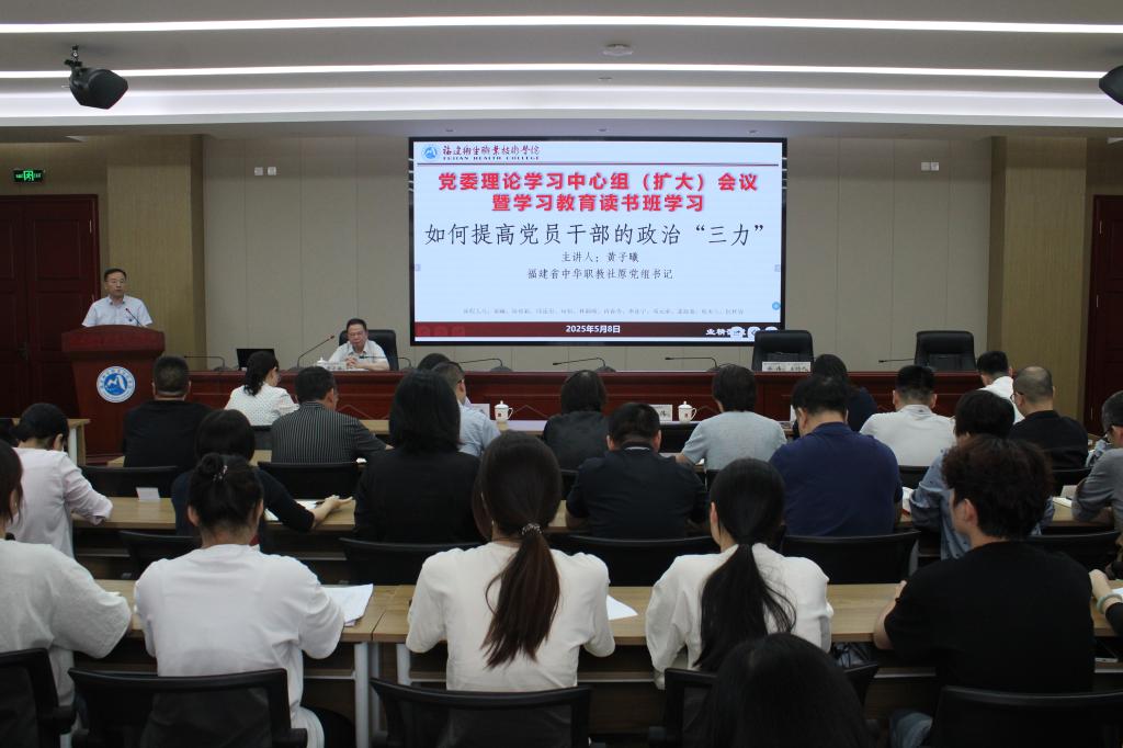 5月8日,我校召開黨委理論學習中心組(擴大)會議暨學習教育讀書班學習,邀請福建省中華職教社原黨組書記黃子曦教授為校領導、全體中層正職(含主持工作)、青馬工程班學員帶來《如何提高黨員干部的“政治三力”》專題講座。此次學習既是對黨員干部政治素養(yǎng)的深度錘煉,也是為青馬工程班學員筑牢信仰根基的重要一課。