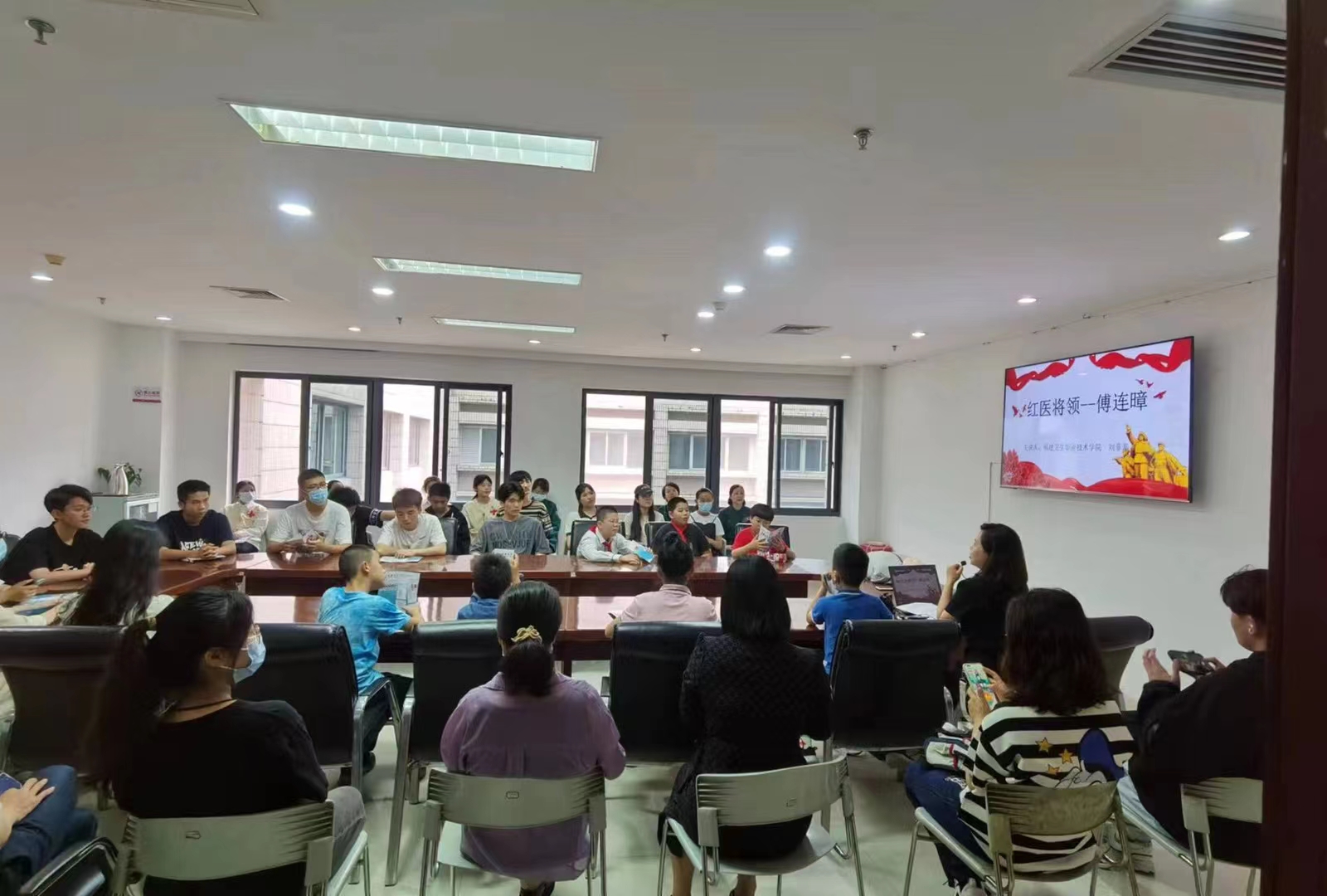 在福建省革命歷史紀(jì)念館4樓會議室,護(hù)理學(xué)院第一黨支部黨員、人文教研室主任劉菲菲老師向在場學(xué)生及家長們講授紅色黨課《“紅色華佗”傅連暲》,給大家介紹了傅連暲懸壺濟(jì)世、傾心向黨,成為堅(jiān)定的無產(chǎn)階級革命者,為黨、國家和人民軍隊(duì)的醫(yī)療衛(wèi)生事業(yè)奉獻(xiàn)一生。